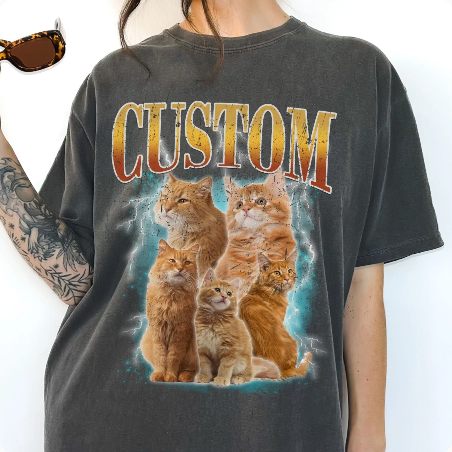 The Custom Cat Lover T Shirt Personalized Graphic Tee for Pet Fans is a stylish tribute to feline friends, featuring a unique and customizable design that showcases multiple cat images. This tee blends personal expression with comfort, making it an ideal pick for cat enthusiasts who want to celebrate their love for their pets in a fashionable way.