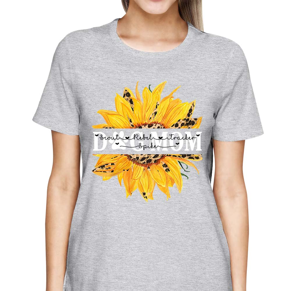 Dog Mom Shirt Personalized Dog Name Sunflower Tee for Women