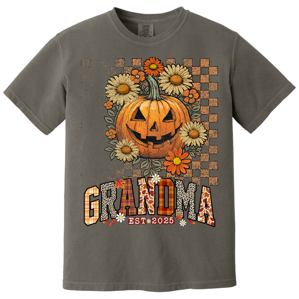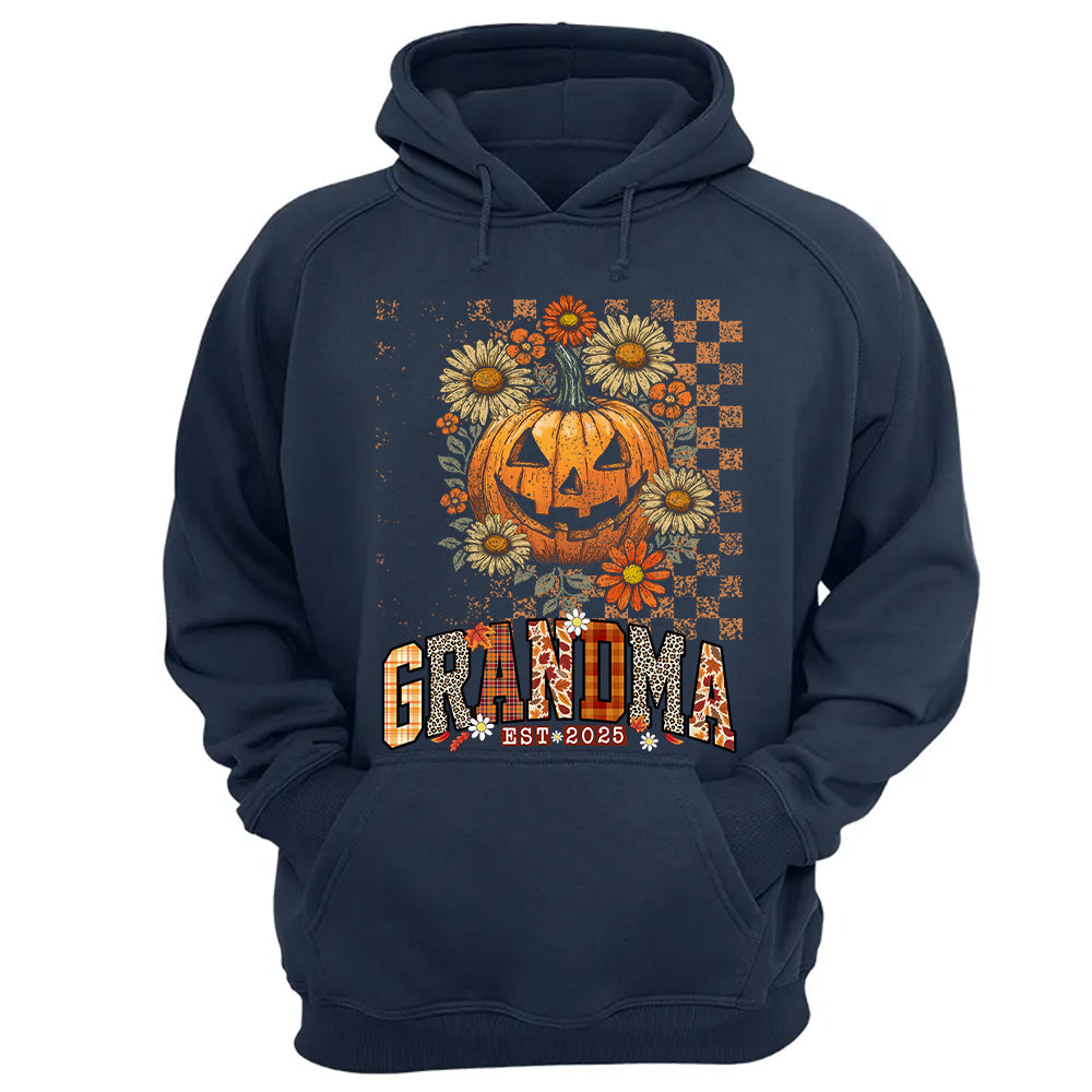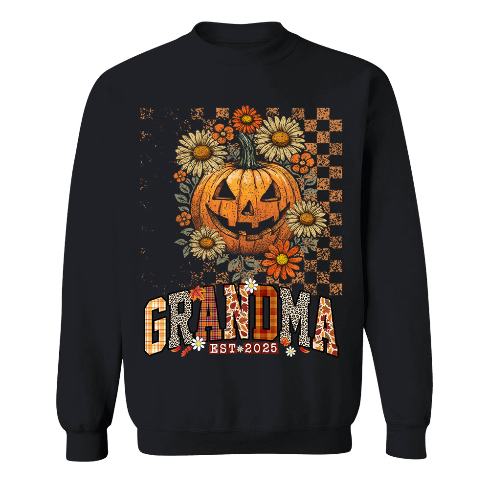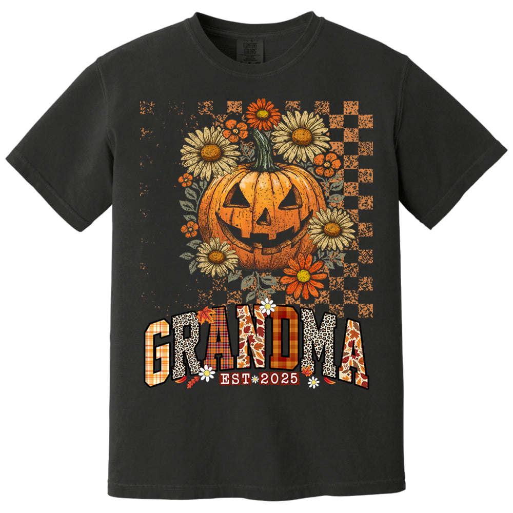 Grandma Est 2025 Halloween Pumpkin and Floral Fall Shirt