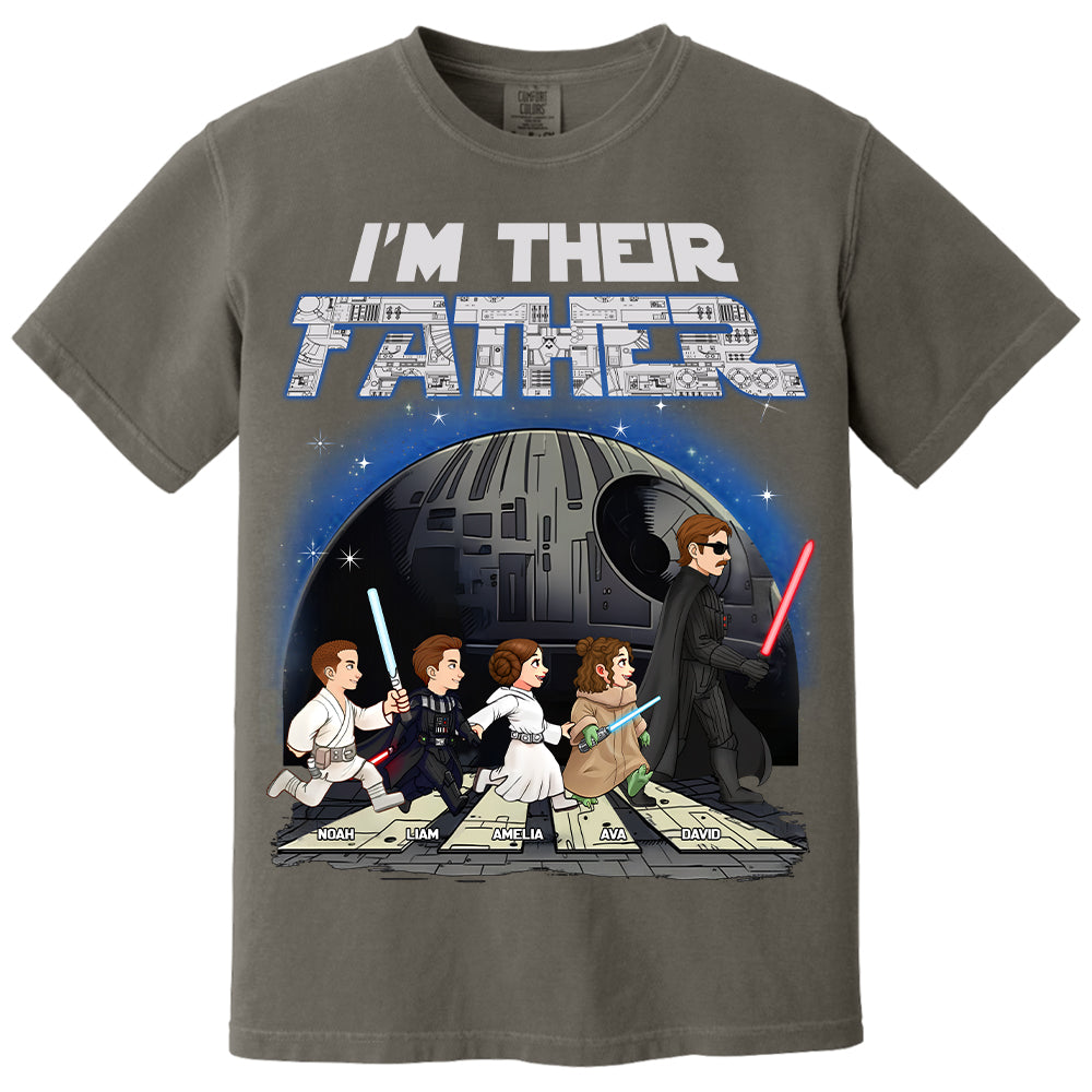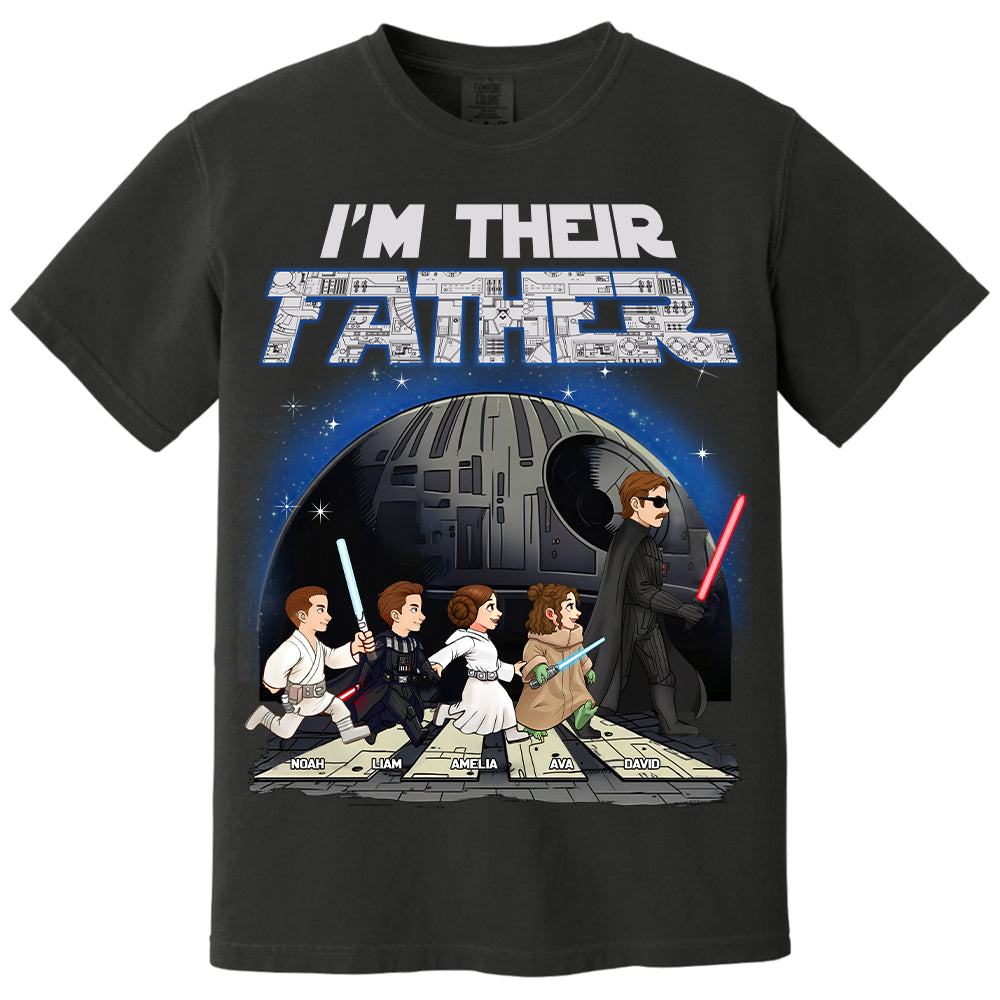 - Distinctive Typography and Detailing: The phrase “I’m Their Father” is prominently displayed in a bold font filled with circuit-like patterns, adding a tech-savvy and futuristic appeal that complements the overall design theme.