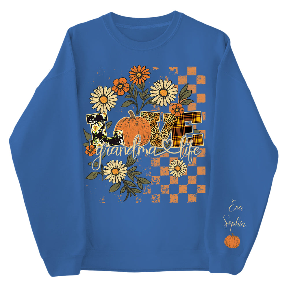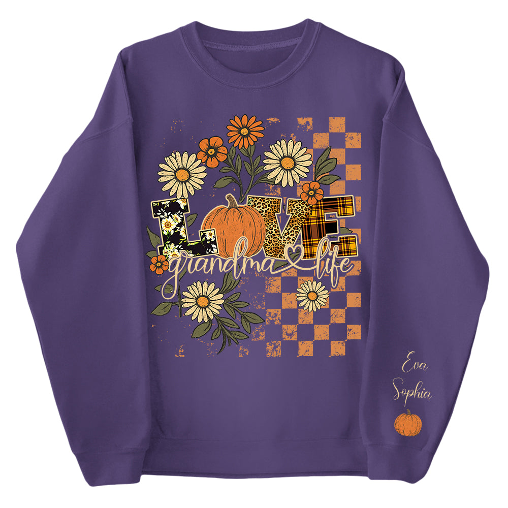 Love Grandma Life Pumpkin Floral Fall Sweatshirt for Women