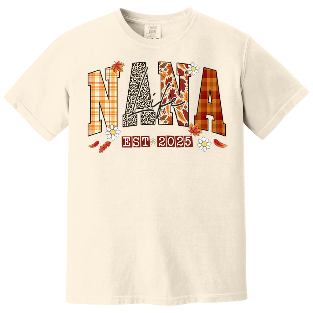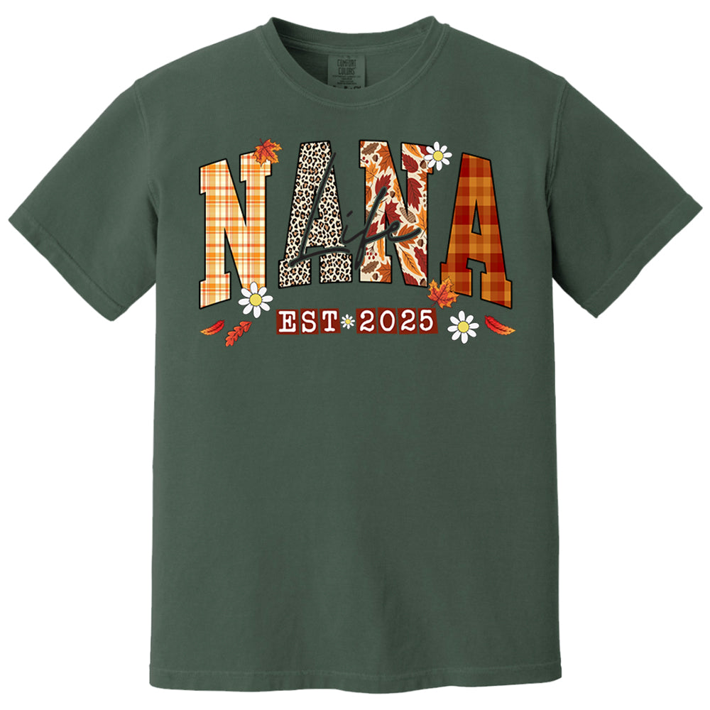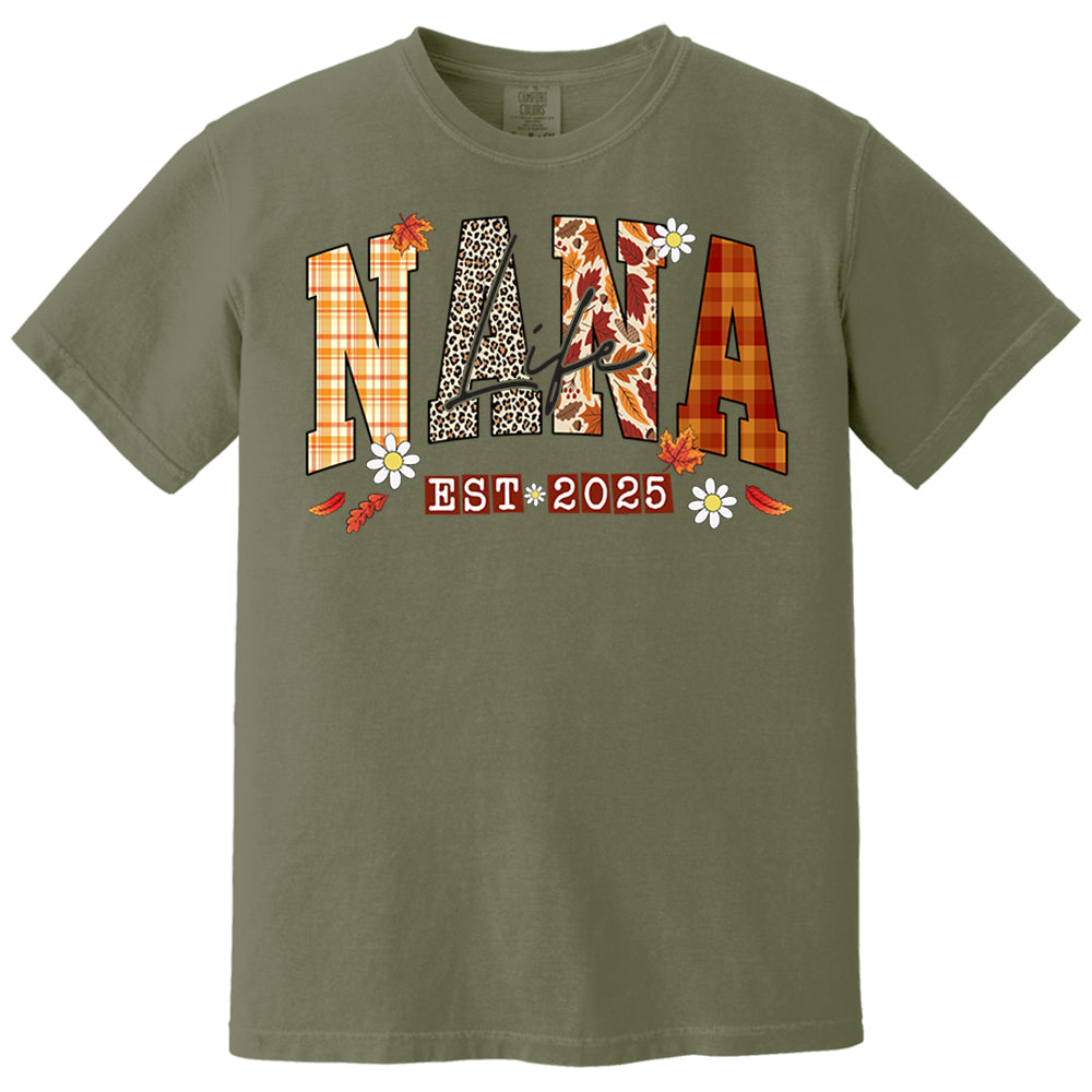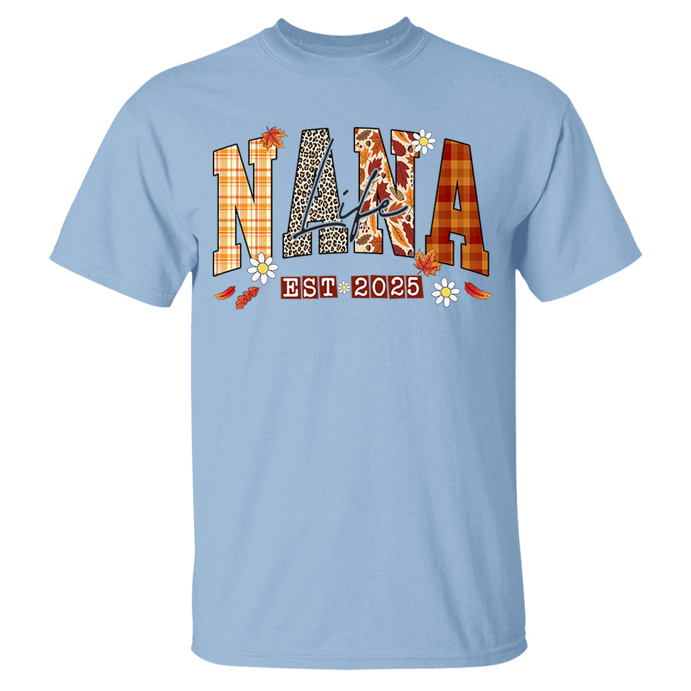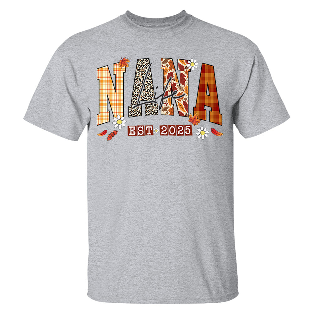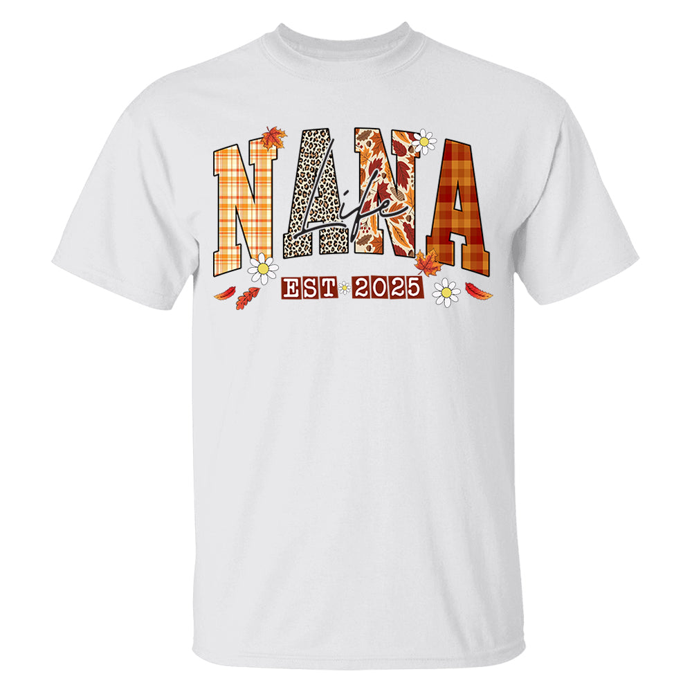The Nana Life Est 2025 Sweatshirt Fall Autumn Leaves Plaid Animal Print offers a stylish blend of patterns that celebrate the warmth of the season. This cozy sweatshirt features a unique coordination of plaid, animal print, and autumn leaves, creating a charming and attention-grabbing design perfect for fall gatherings.