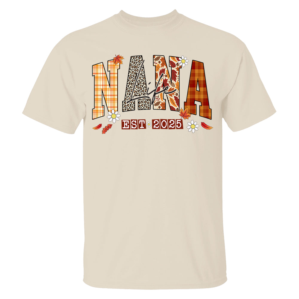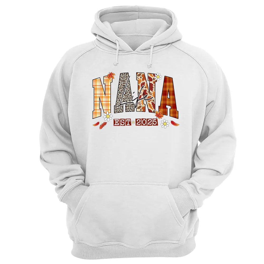Nana Life Est 2025 Sweatshirt Fall Autumn Leaves Plaid Animal Print