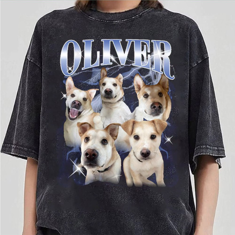 The Oliver Dog Lover Graphic Tee Shirt Casual Vintage Style Top perfectly combines a nostalgic vintage vibe with personalized pet charm. Featuring a unique layout of multiple dog portraits under bold “OLIVER” lettering, this tee delivers a casual yet heartfelt look for dog enthusiasts eager to showcase their furry friend’s personality.
