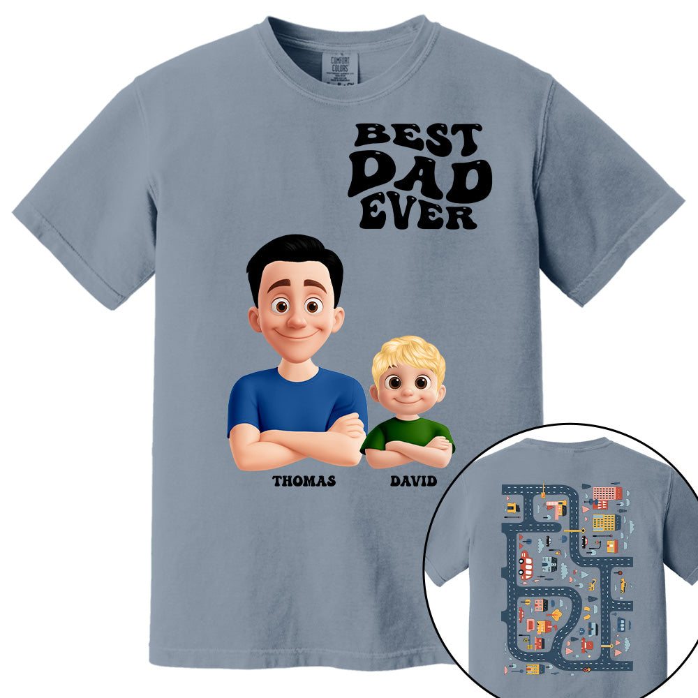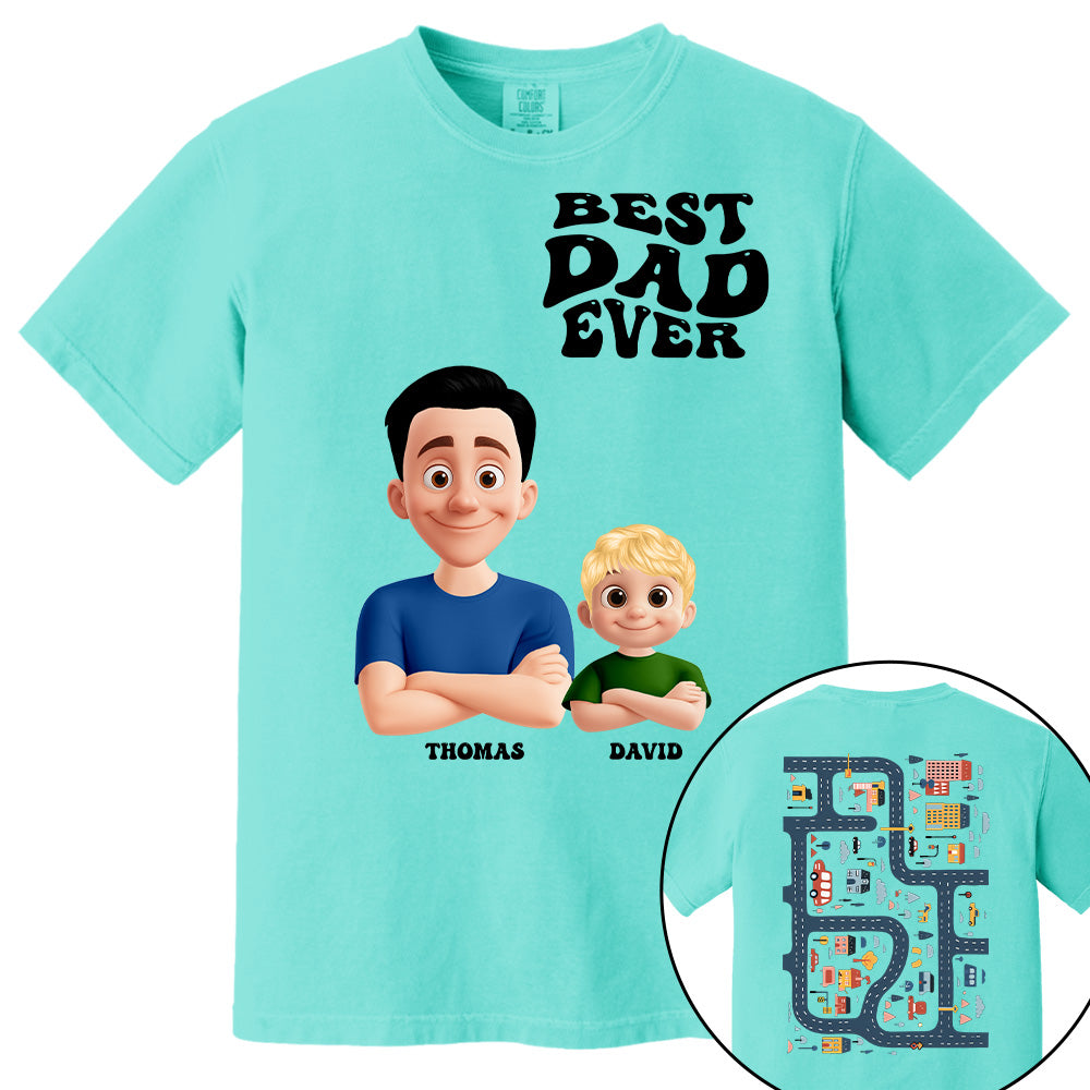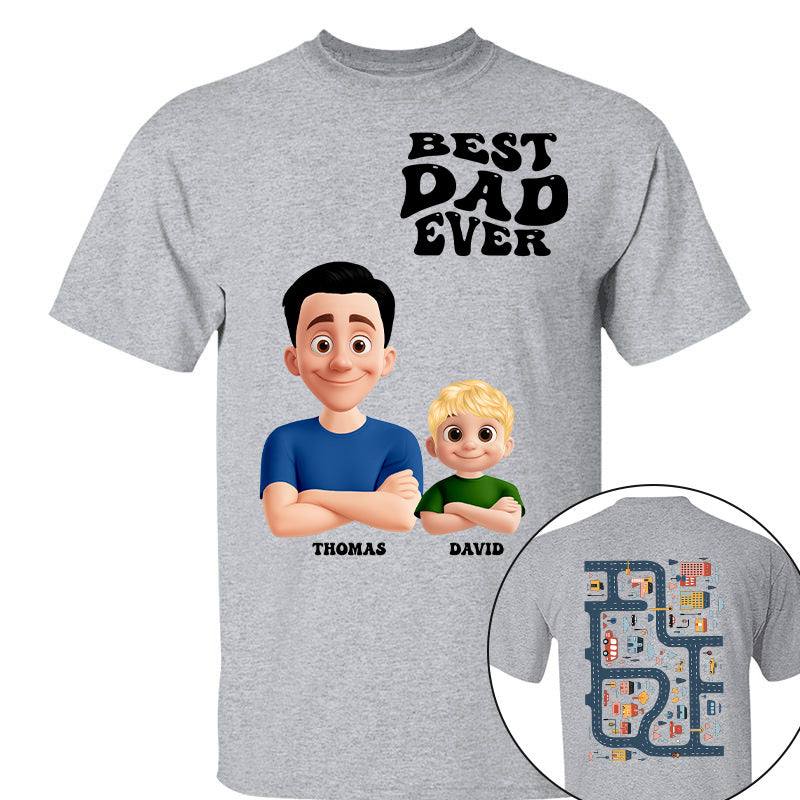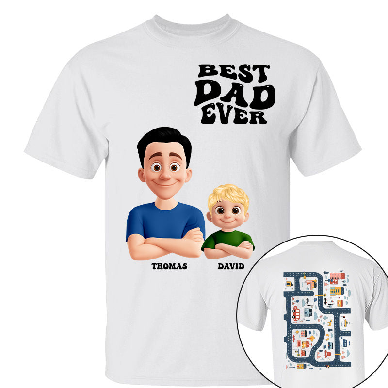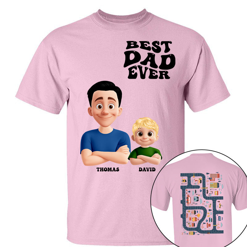 Personalized Best Dad Ever Shirt Custom Cartoon Dad and Son Tee